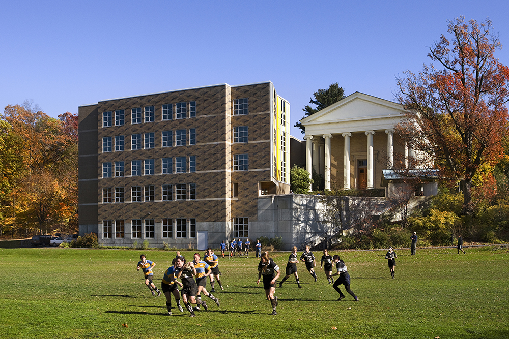 Photo: Seth Goldfine Memorial Field and the Charles P. Stevenson Jr, Library at Bard College. Photo by Peter Aaron