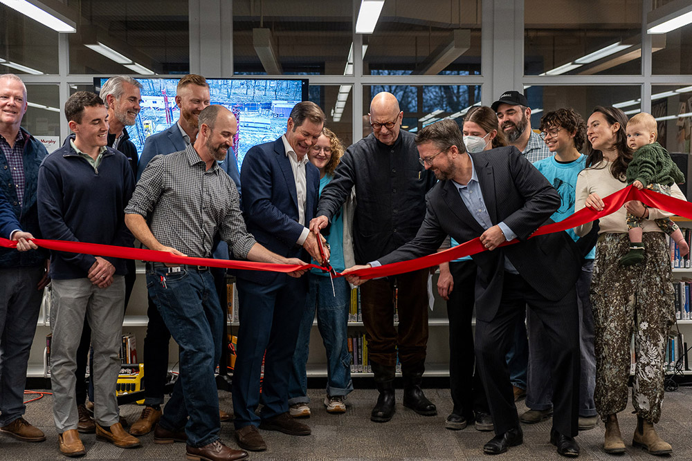 Photo: Ribbon-cutting for the Stevenson Library's new geothermal and HVAC system. Photo by Joseph Nartey ’26