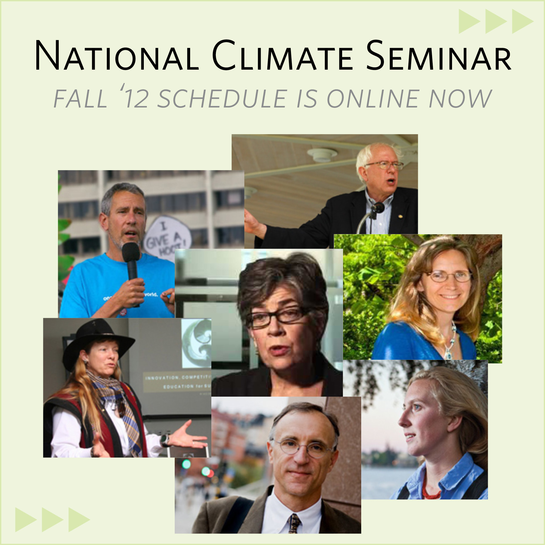 This fall, listen in real time to climate and clean energy specialists talk about the latest science, policy, law, and economics of climate change. These half-hour talks give students the opportunity to hear top scientists, analysts, and political leaders discuss climate and clean energy solutions.