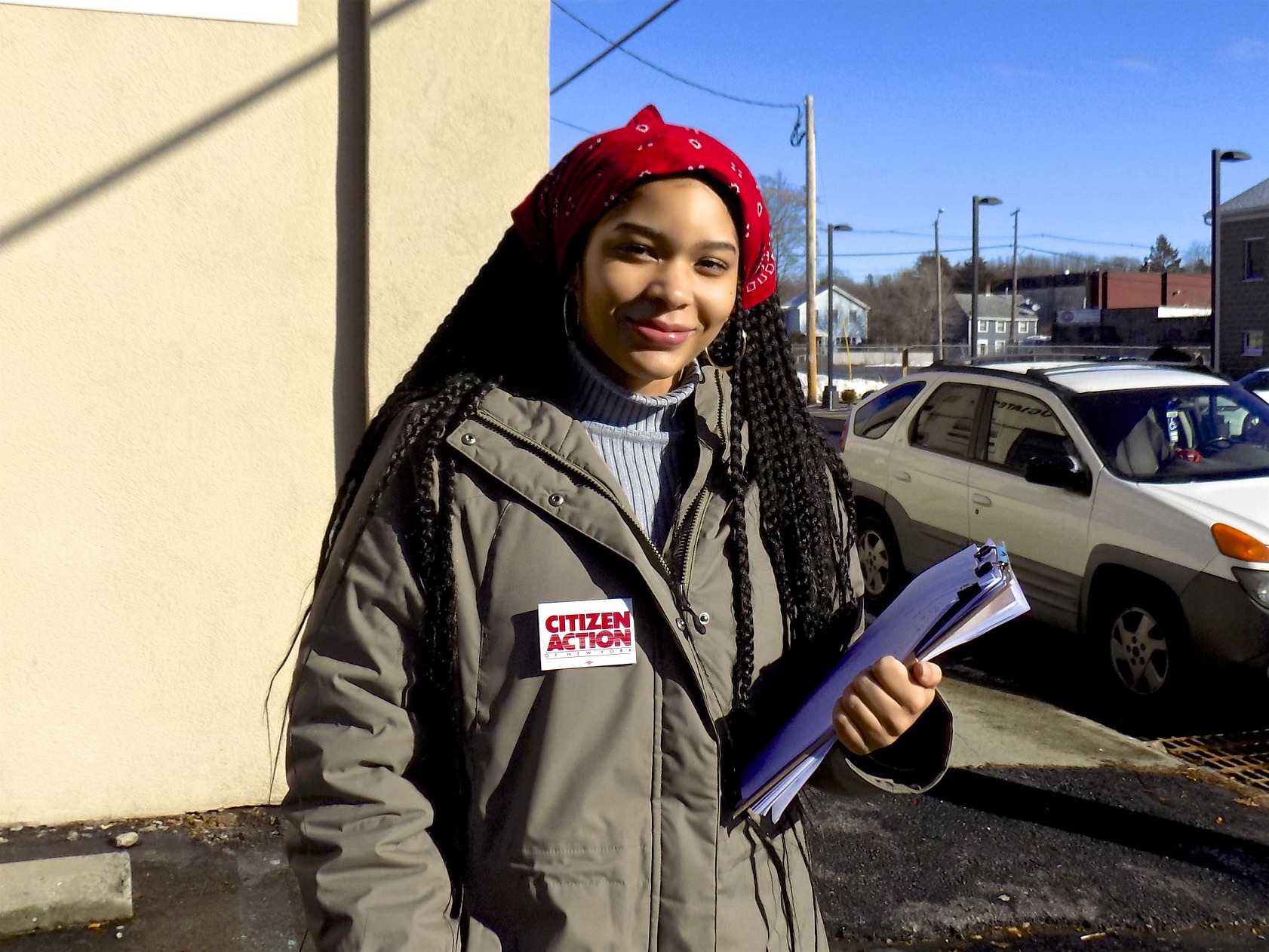 Photo: Bard College first-year Simone Richardson canvassing for Citizen Action.