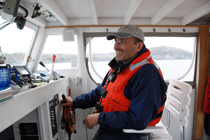 Photo: John Lipscomb, of the Riverkeeper conservation group, aboard the Ian Fletcher. Photo courtesy Riverkeeper