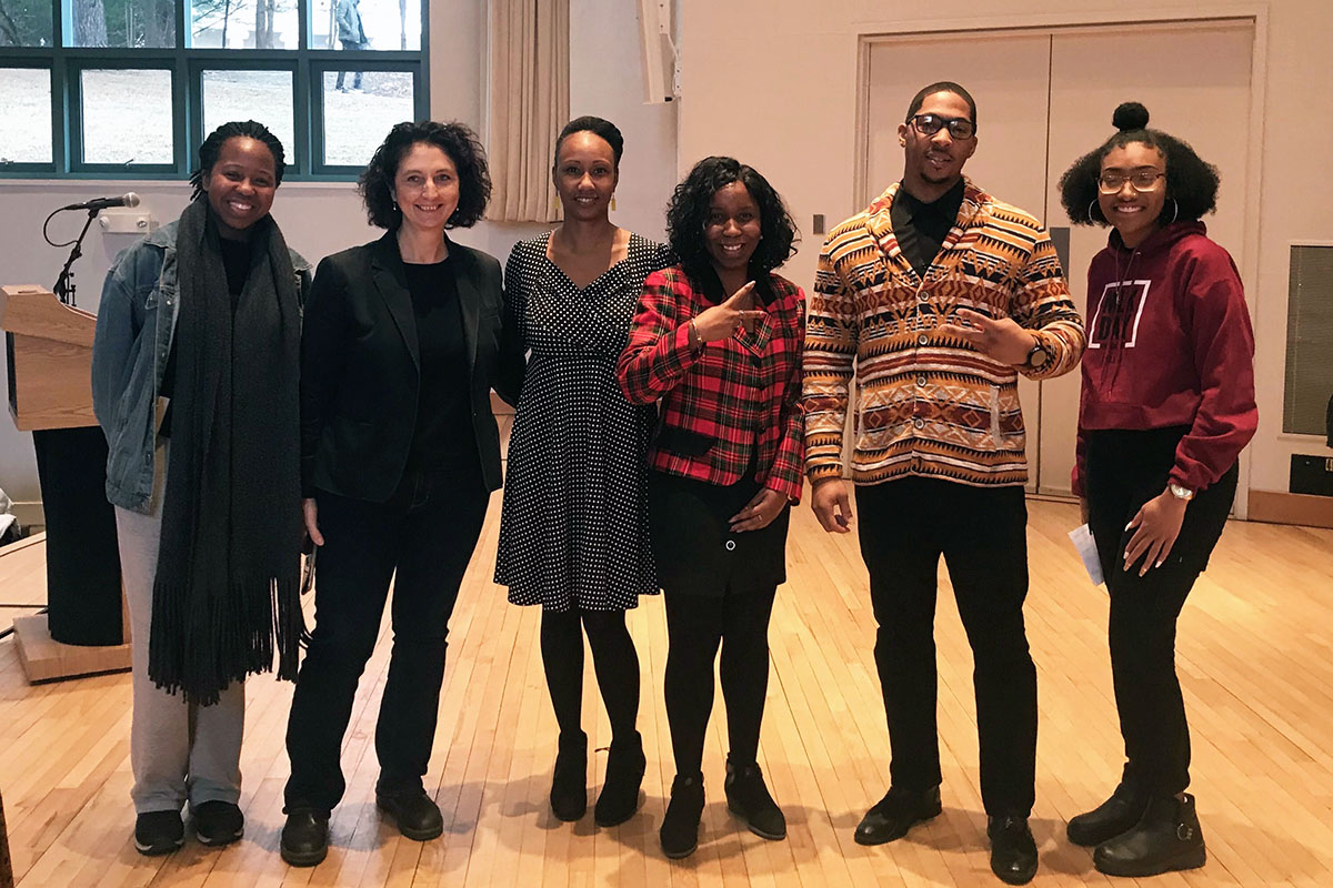 Photo: MLK Day of Engagement 2020 conference panelists with fellows. L–R: MLK Day Fellow Mikalah Jenifer, Jody Miller, Shaniqua Bowden, Cammie Jones, L'Quette Taylor, and MLK Day Fellow Daniella Mingo.